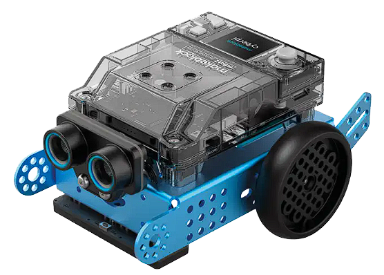 Le robot mBot est un véhicule robot équipé d’une carte Arduino modifiée. Cette carte, et donc ce robot, se programment grâce au logiciel ou à l’application MBlock. Voici les caractéristiques principales du robot mBot :